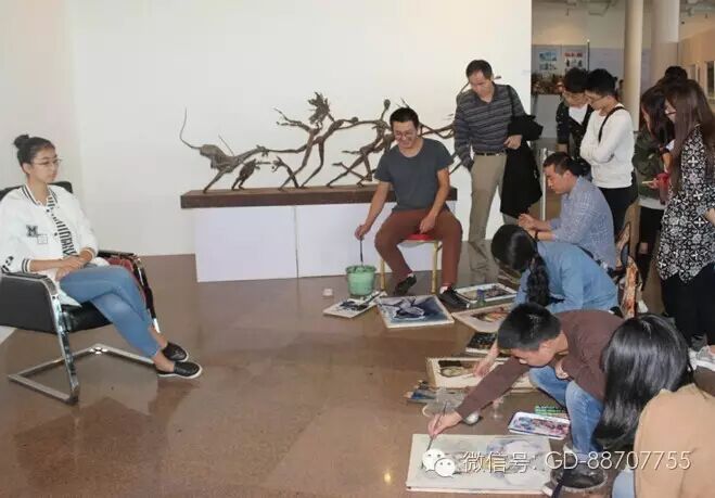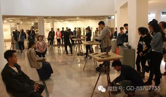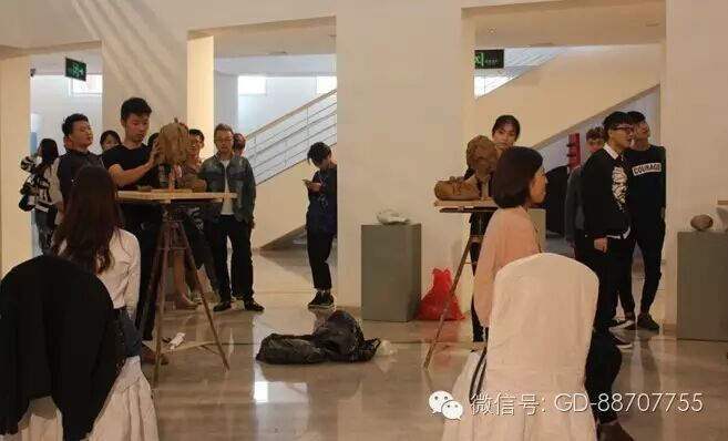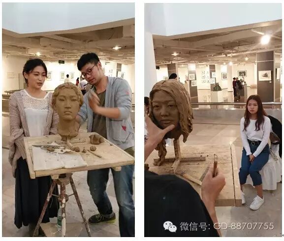 图为湖北美术学院、青大美术学院学生在雕塑馆现场塑像